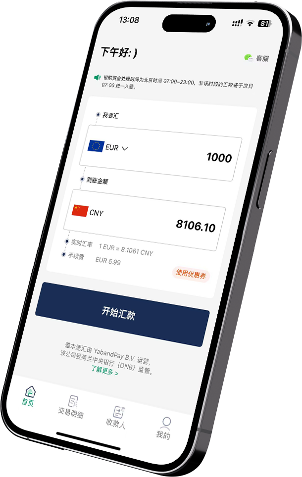 在欧洲监管框架下,银行和持牌支付机构均属于支付服务提供商(PSP),均可依法提供汇款服务。雅本速汇由荷兰持牌支付机构 YabandPay 提供服务,依法接受监管。