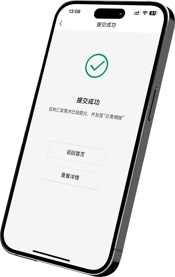 提交汇款后,您可以在App内实时查看汇款进度。每个关键节点(如支付确认、资金处理中、已到账等)都会有清晰的提示,让您随时掌握汇款状态。